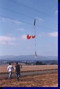 Recovery was less than perfect. The dual deployment system worked great, however the wind decided to deposit the rocket in the only powerlines within miles. We got everything back later that day after the wind pulled the rocket closer to the ground, and a passerby tugged it off the lines. The power company arrived minutes later. Hows that for timing. |