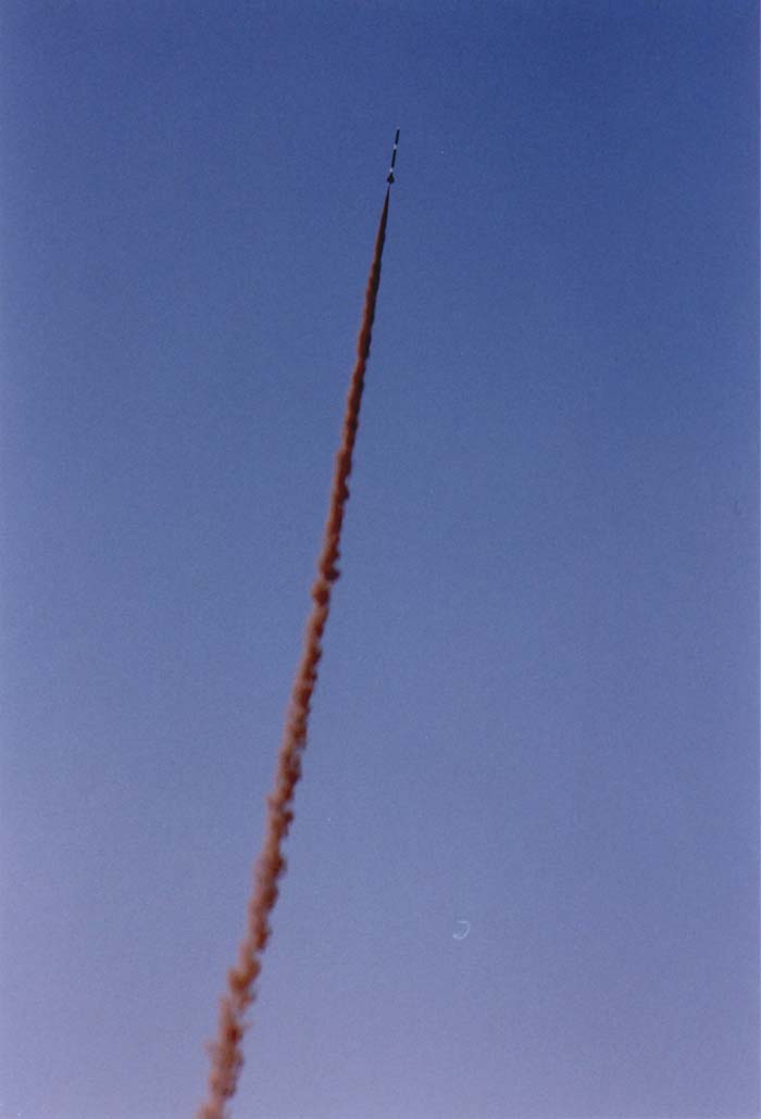 Still going up. I'm not sure how Brad got two pictures of this launch, the minimum diameter rocket really cooked off the pad! |